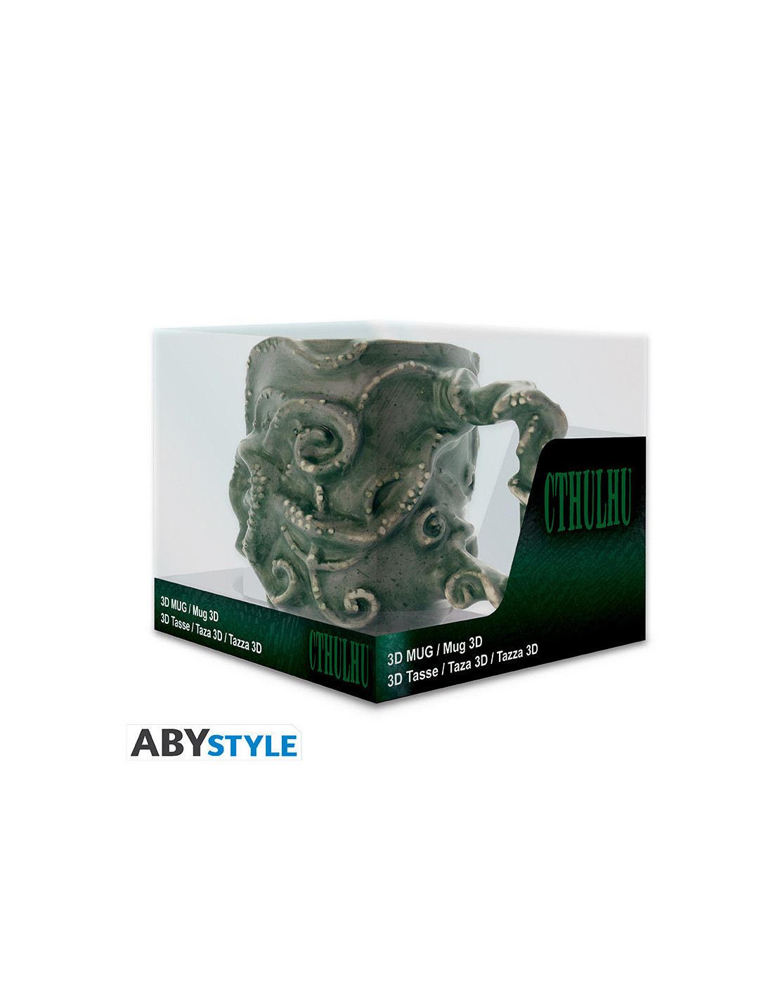 ¡Únete al culto de Cthulhu con esta taza 3D de ABYstyle! El monstruo de las aventuras lovecraftianas aguarda pacientemente en su reino de R'lyeh; el fin de su letargo es inminente... - Capacidad: 300 ml. - No apto para microondas ni lavavajillas. - Material: dolomita. - Superficie en relieve.