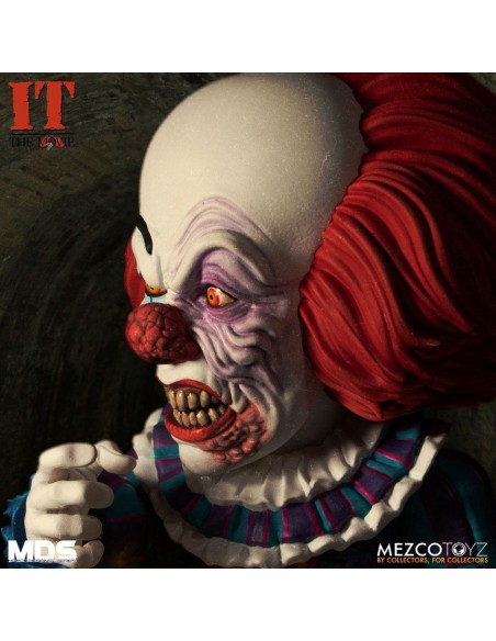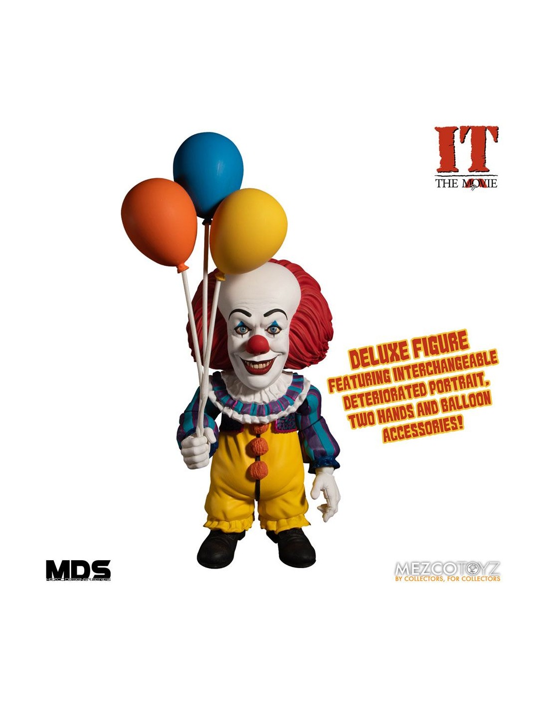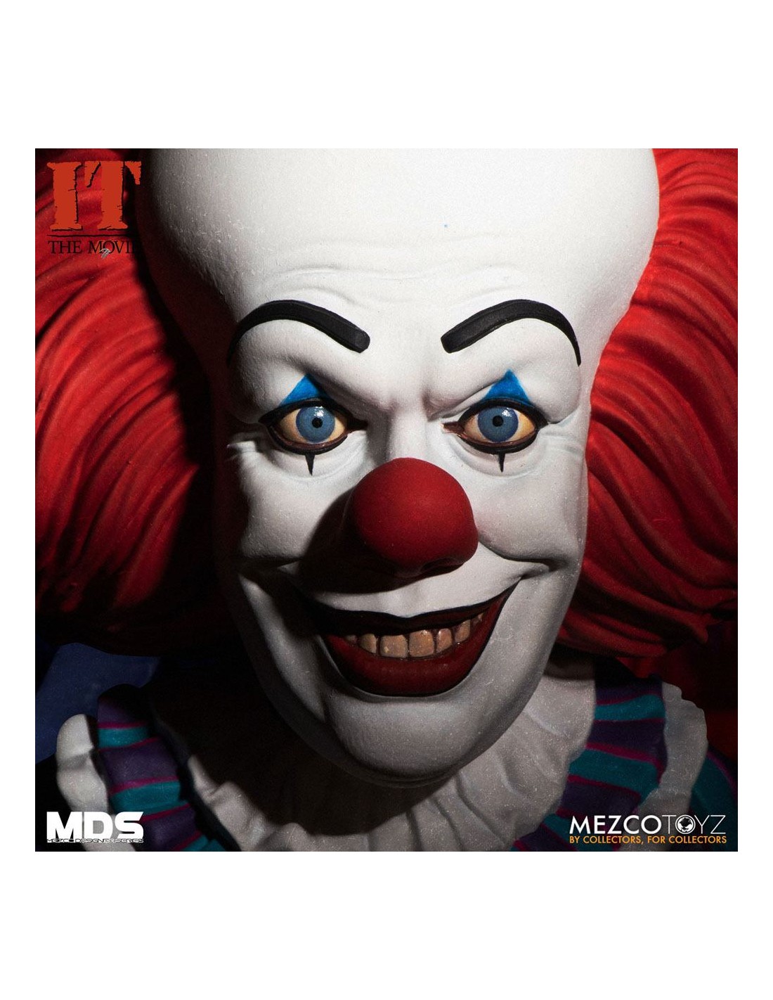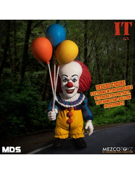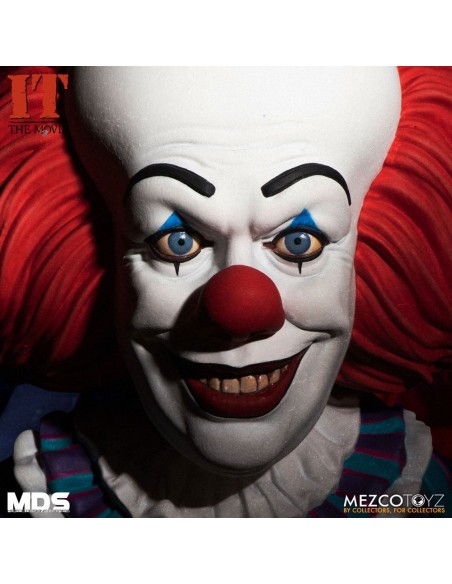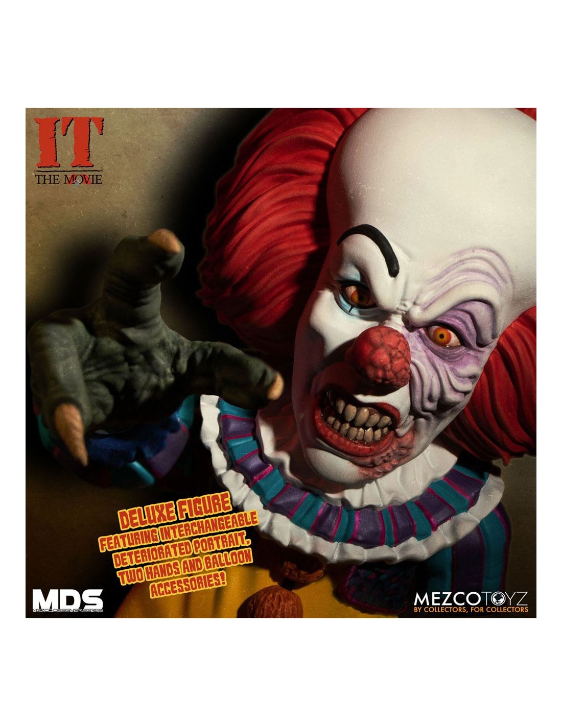 MEZCO Toys nos trae en esta ocasión la figura articulada MDS "Stephen King's IT 1990" Deluxe de aproximadamente 15cm. Viene con accesorios y cabezas intercambiables en una caja regalo con ventana.