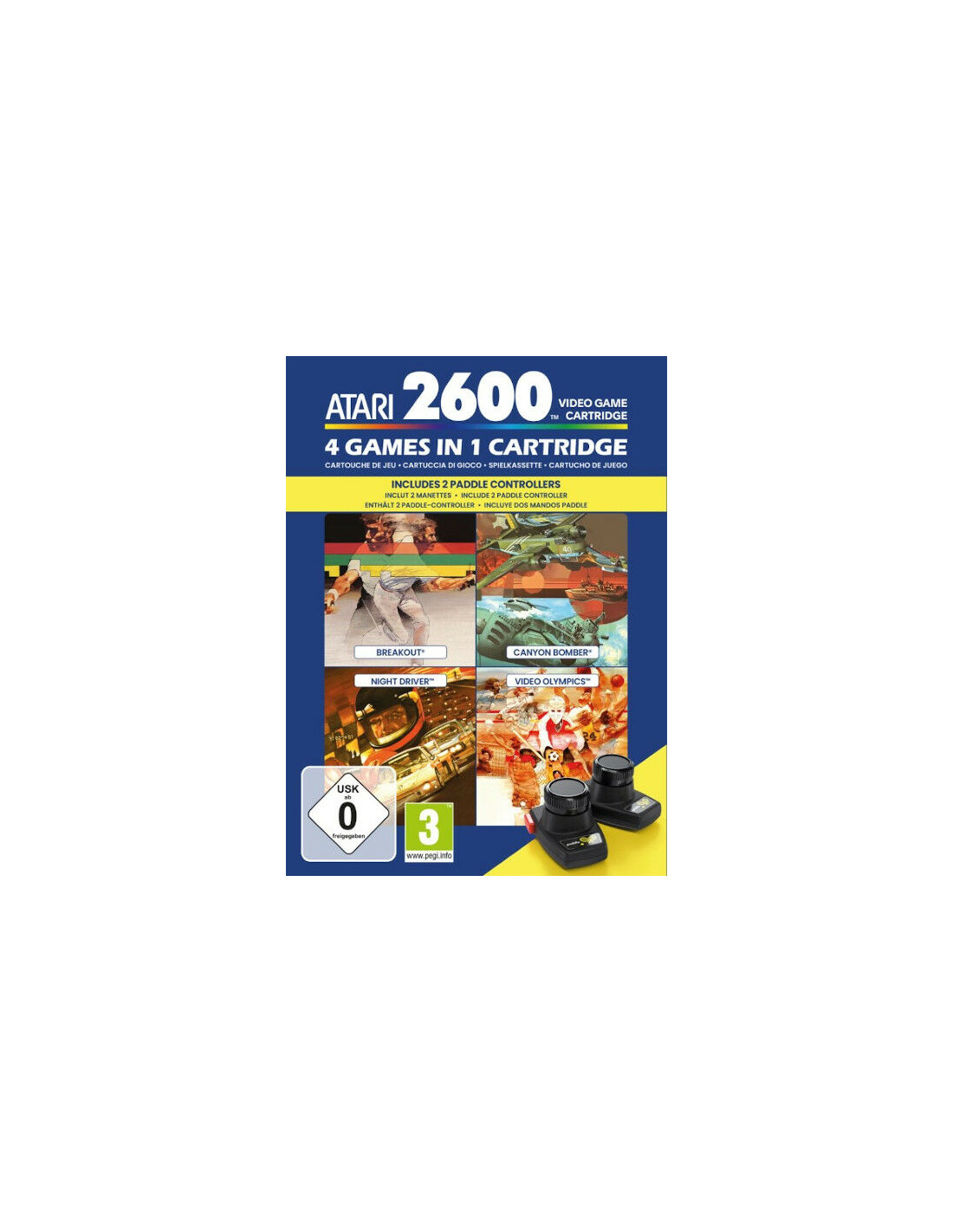 ATARI 2600 4 GAMES IN 1 (Breakout/CanyonBomber/Night Driver/Video Olympics) + 2 Mandos Paddle