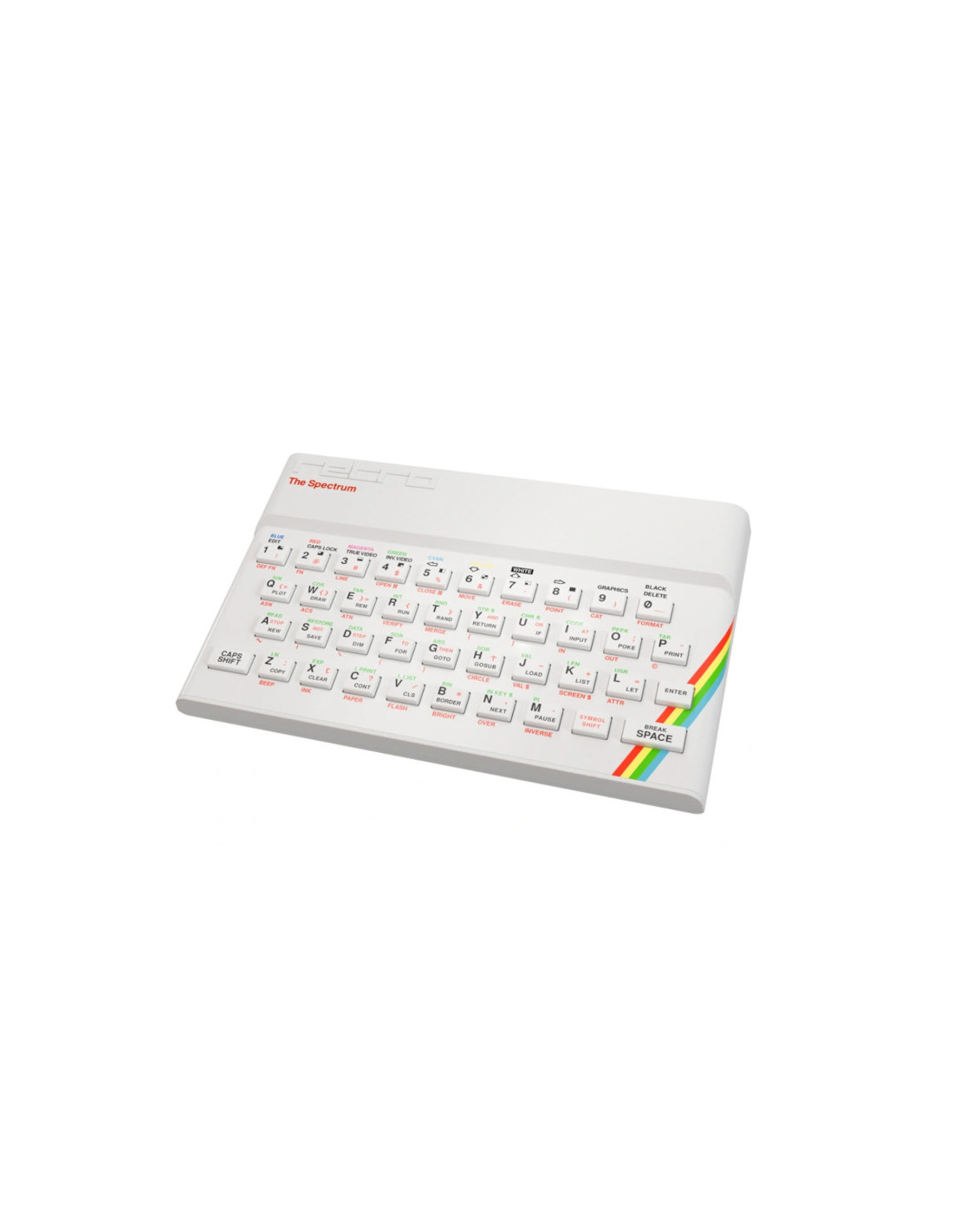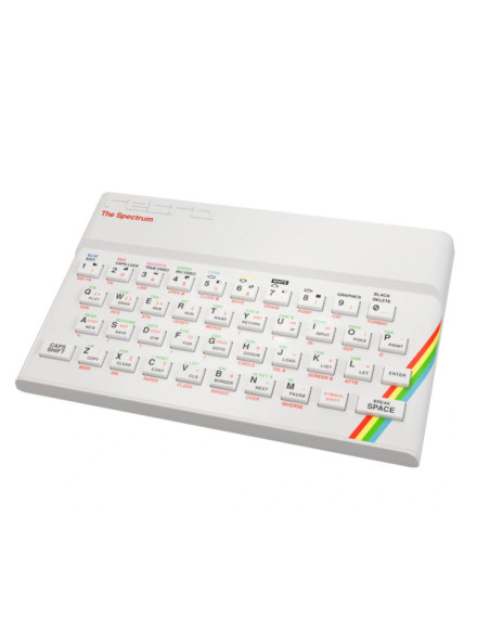 ¡REVIVE LA MAGIA! Descubre The Spectrum, una magnífica obra maestra digna de un museo de arte, adornada con los característicos colores del arcoíris. Esta máquina extravagante y divertida otorga acceso a una amplia variedad de juegos listos para su disfrute, ofreciendo así una experiencia que se ha perdido con los juegos de hoy en día. Con una estética atemporal y gran personalidad, The Spectrum no es solo una réplica de los típicos ordenadores de los años 80; es una obra maestra que da rienda suelta a la nostalgia de los videojuegos de antaño para todos los públicos Emula los modelos 48 y 128 del ZX Spectrum. Teclado de réplica completamente funcional. 48 juegos incluidos, como Manic Miner, The Hobbit y Head Over Heels. Salida multirregión con calidad 720 HD a través de HDMI, compatible con PAL (50Hz) y NTSC (60Hz). Juega en el formato original con relación de aspecto 4:3 o pixel, con o sin filtros CRT y con tamaño del borde ajustable. Elige entre 12 atractivos marcos para la pantalla de juego. Guarda tu partida en cualquiera de las 4 ranuras de guardado disponibles por juego y retrocede hasta 40s. Juega a lo que te apetezca con tu unidad USB gracias a la amplia compatibilidad con diferentes tipos de archivo (TAP/TZX/PZX/SZX/Z80/SNA). Cuatro puertos USB-A a los que conectar más mandos para disfrutar del modo multijugador y unidades USB.