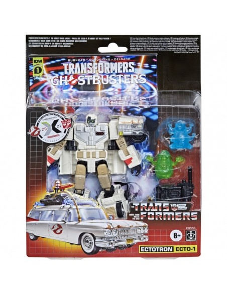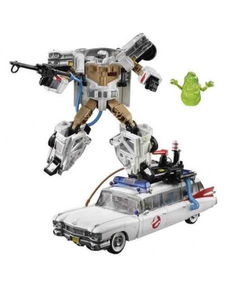 Hasbro presenta dentro de su línea de figuras de Transformers esta colaboración con la película "Ghostbusters". Ahora podremos transformar el vehículo de los Cazafantasmas en el autobot Ectotron. Se trata de una figura articulable y transformable hecha en PVC. El set incluye varios accesorios e instrucciones para poder transformar el coche Ecto-1 en el autobot Ectotron en tan solo 22 pasos.