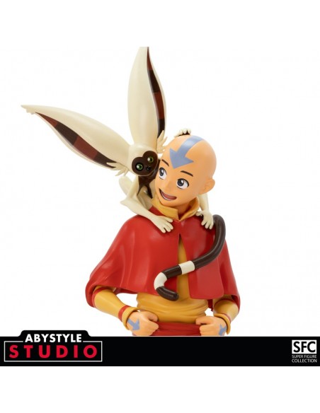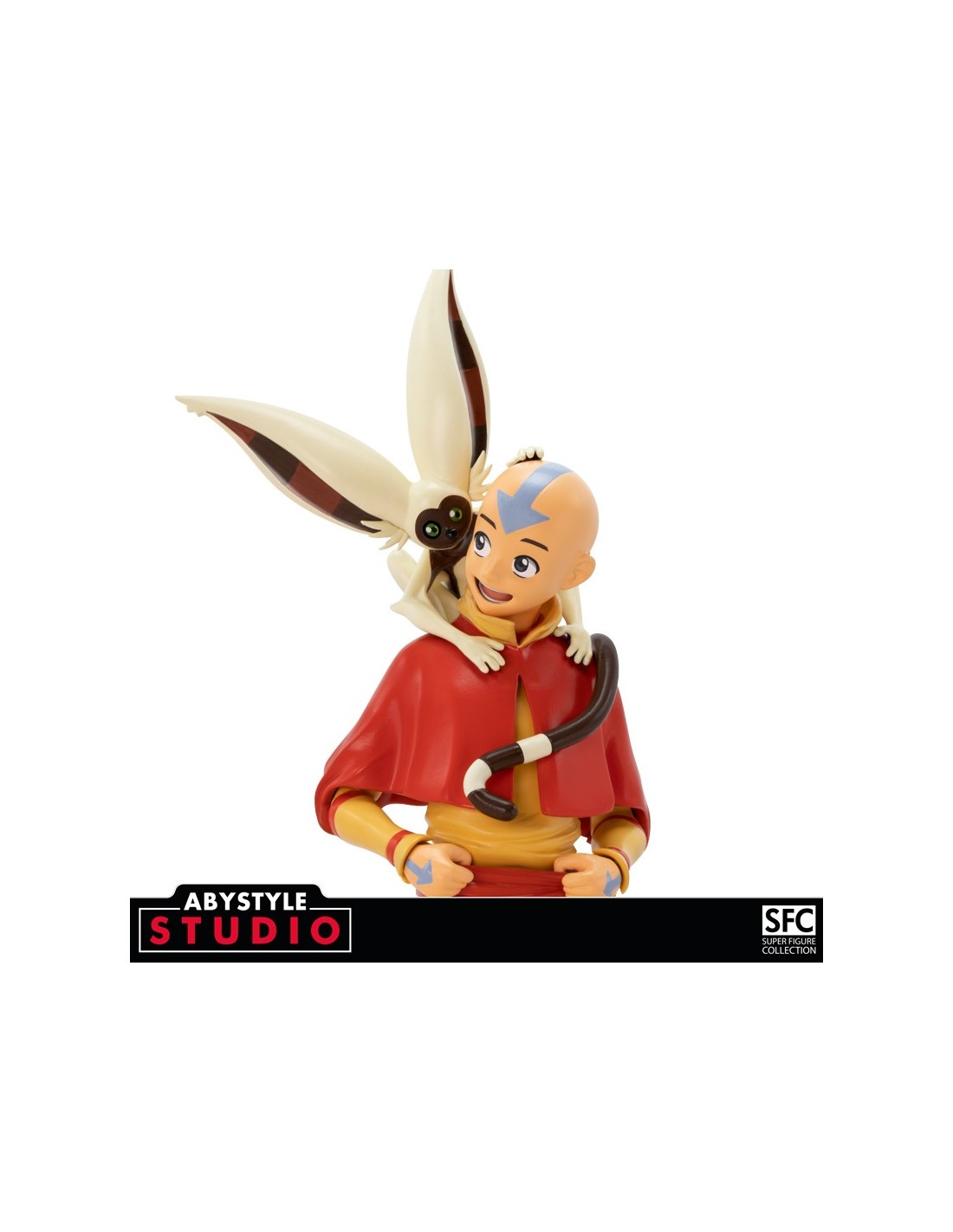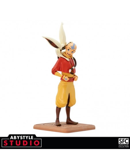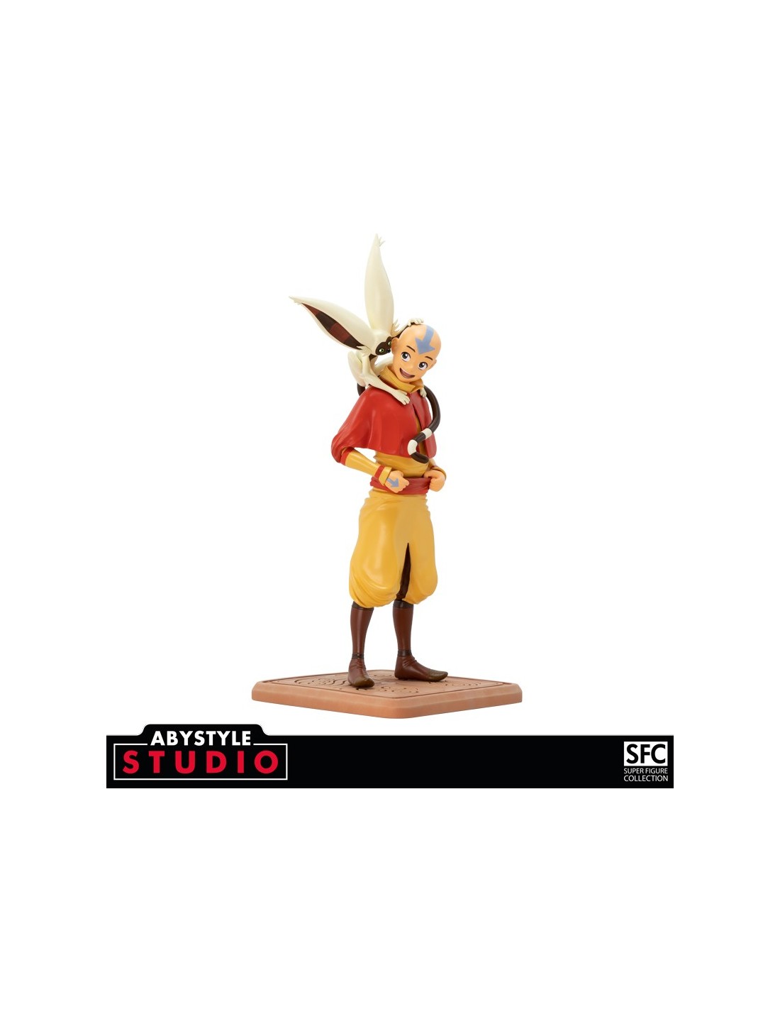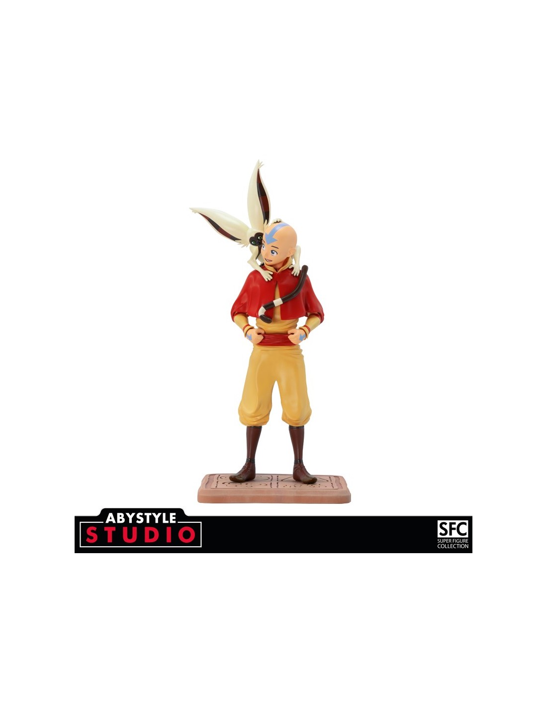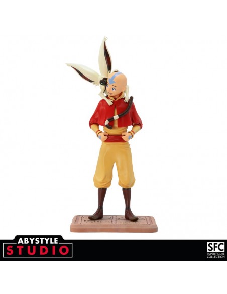 Restaura el equilibrio en tu colección con esta figura de SFC Aang de ABYstyle Studio. Con su fiel compañero Momo, Aang se para sobre una base hecha de piedras que representan los 4 elementos: Agua, Tierra, Fuego y Aire. - Figura de PVC de la gama Super Figure Collection (SFC) - Altura: 18cm - Escala: 1/10