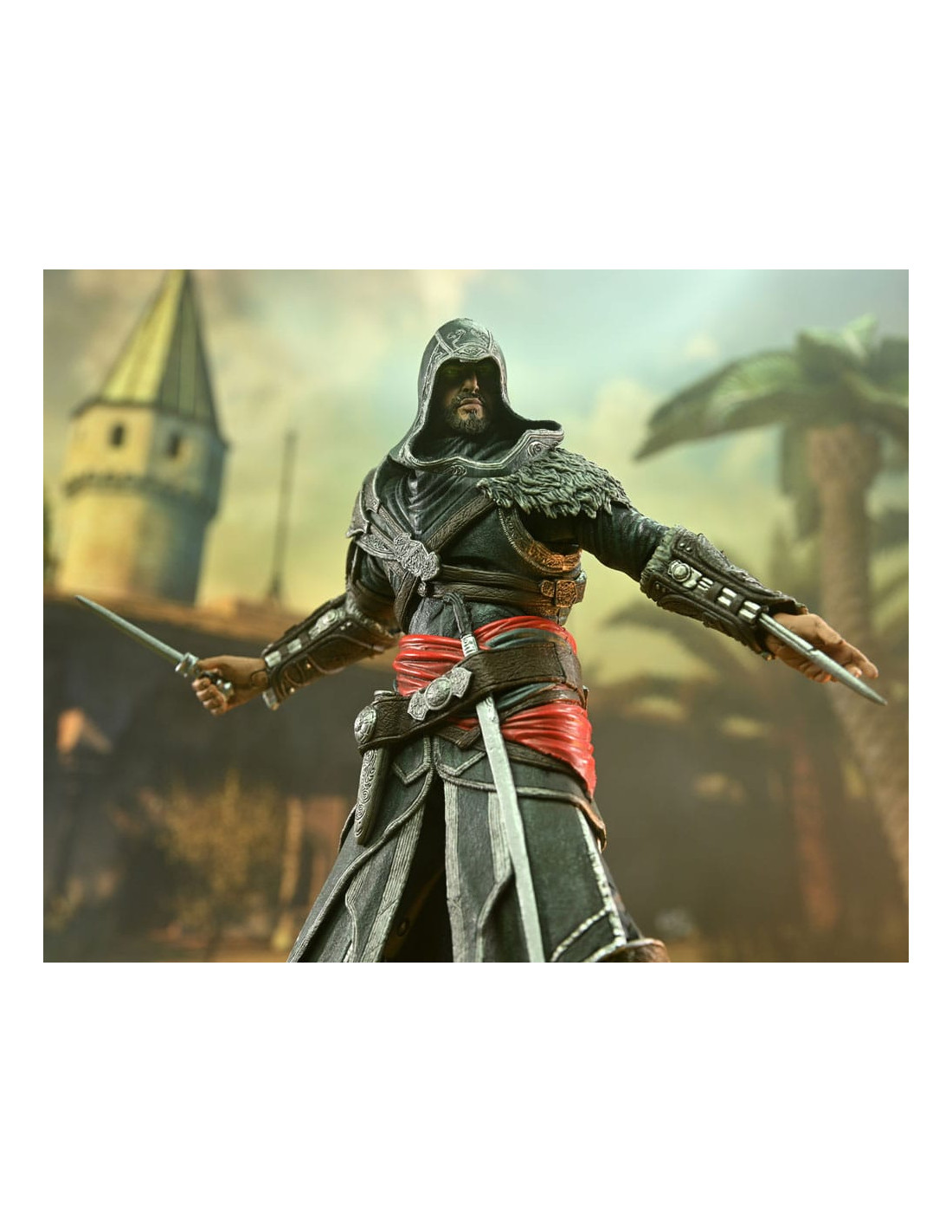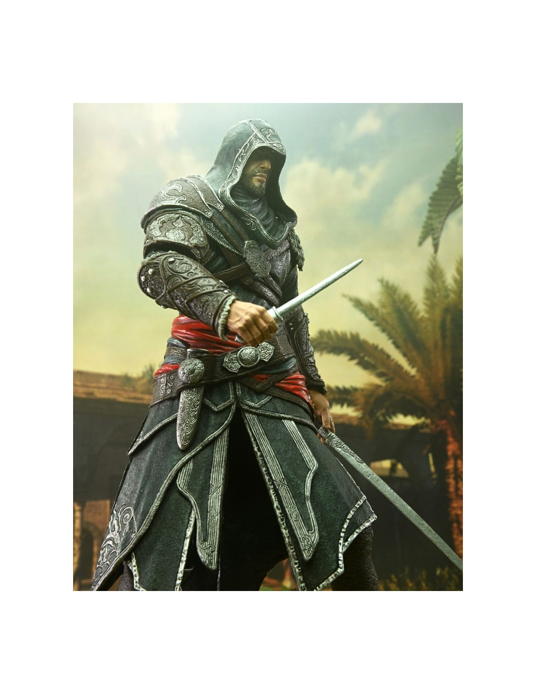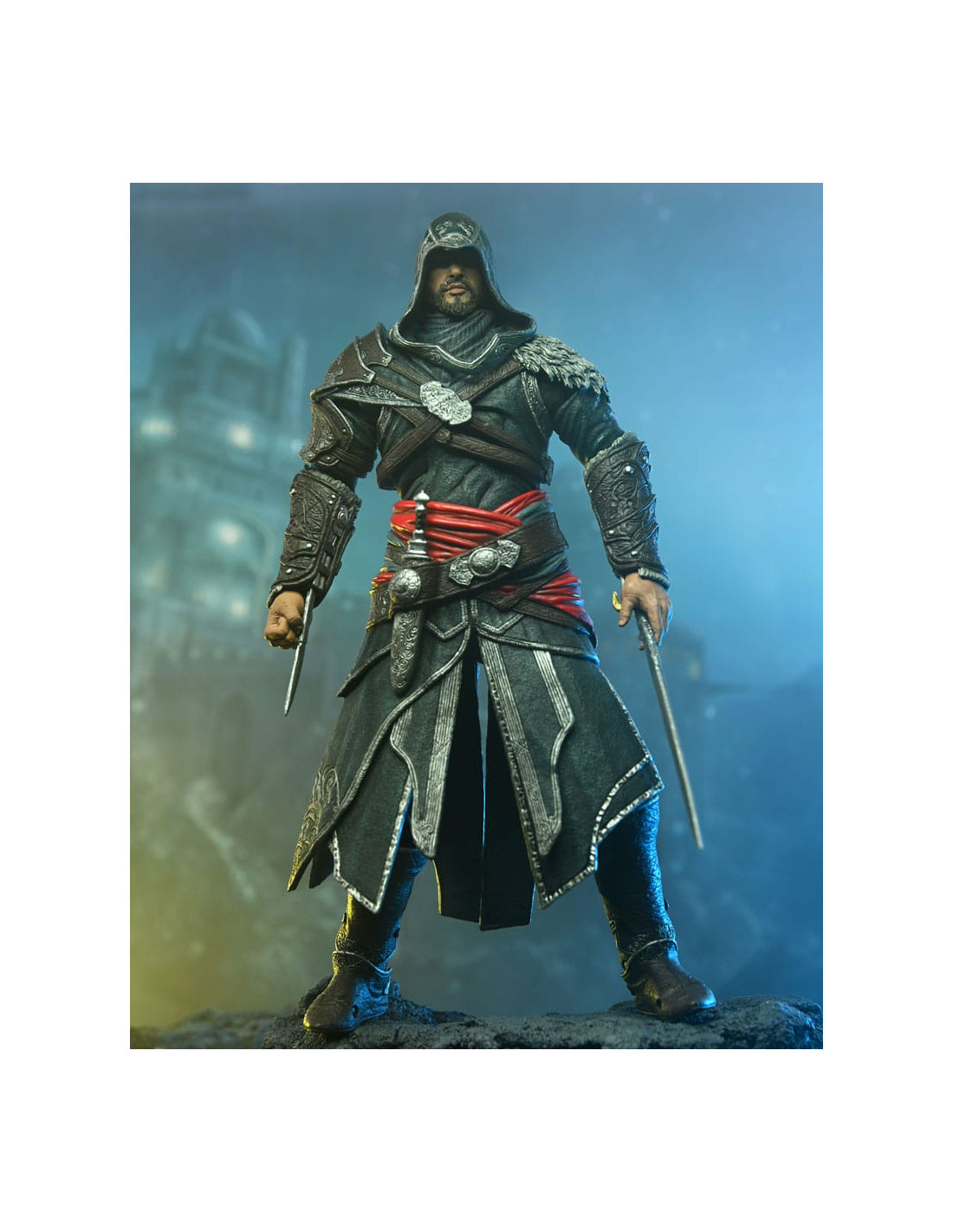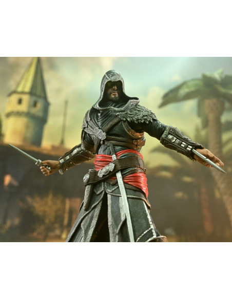 Neca presenta, dentro de su línea de productos, la figura de Ezio Auditore. El protagonista de popular videojuego Assassin's Creed mide 18 cm y tiene más de 35 puntos de articulación. Viene con 5x manos intercambiables junto con sus característicos puños extensibles, 1x daga, 1x espada y 1x ballesta.