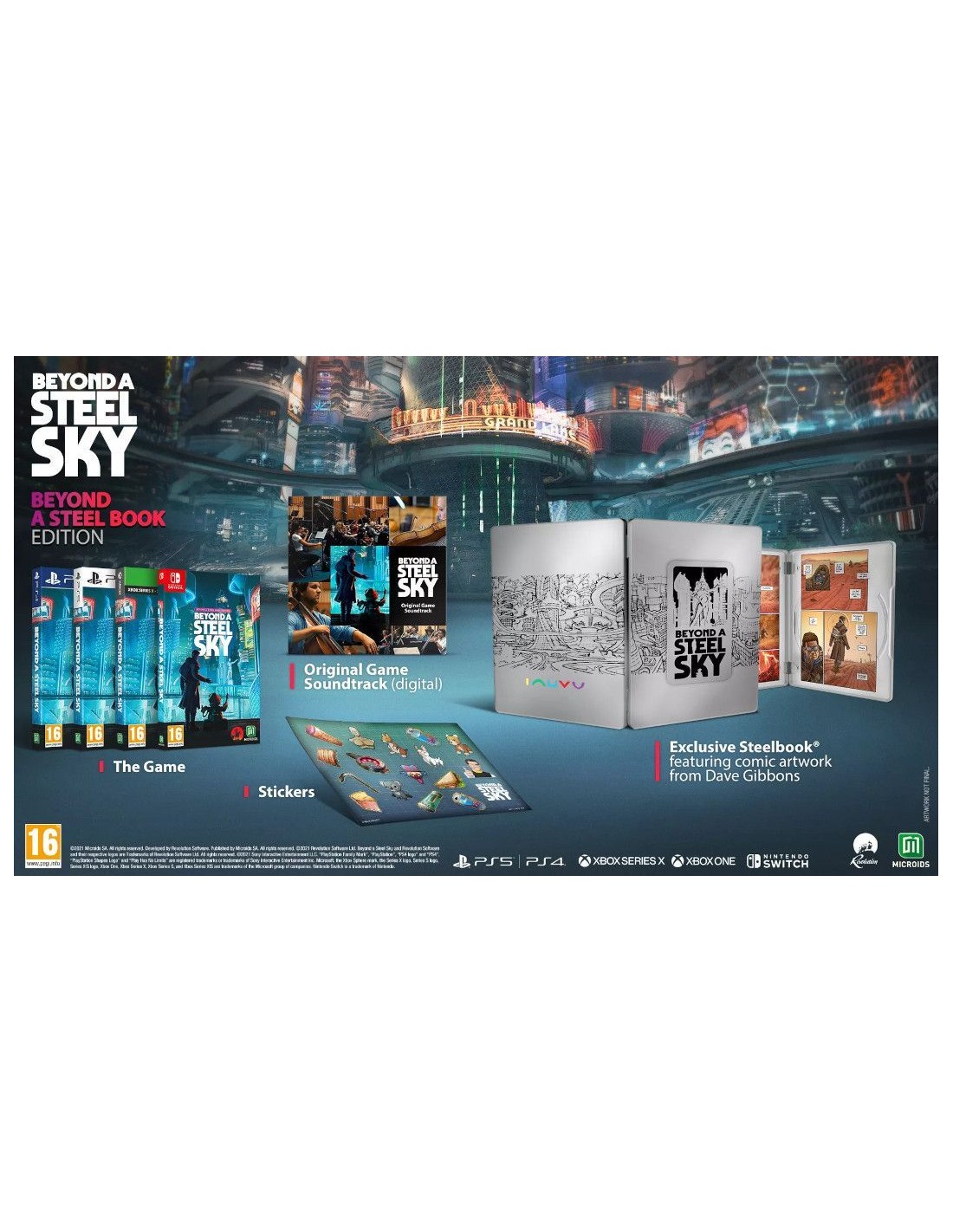 Del galardonado estudio Revolution, llega una nueva y revolucionaria aventura: Beyond a Steel Sky, un thriller en 3D ambientado en un futuro dominado por la inteligencia artificial. Sabotea el mundo, hackea los sistemas y resuelve la conspiración para sacar a la luz verdades devastadoras. «Charles Cecil, creador de la saga Broken Sword, con la dirección artística de Dave Gibbons, el legendario dibujante de cómics de «Watchmen», nos trae Beyond a Steel Sky, la esperadísima secuela del clásico de culto Beneath a Steel Sky. Eres Robert Foster. Un niño ha sido secuestrado en un brutal ataque. Te has comprometido a dar con él y devolverlo a su hogar. Pero el rastro te ha alejado de tu comunidad de moradores del desierto y te ha conducido a Union City, una de las pocas megaciudades que quedan en un mundo devastado por demoledoras guerras y el colapso político. Fortificada e impenetrable, es una utopía donde la gente vive felizmente bajo la vigilancia y el control de una inteligencia artificial benigna. Pero las cosas no son ni remotamente lo que parecen... Beyond a Steel Sky es un thriller ciberpunk cargado de dramatismo y humor en el que los apasionantes rompecabezas se convierten en el motor de una trepidante narrativa, todo ello ambientado en un dinámico mundo de juego que responde (y puede sucumbir) a las acciones del jugador.